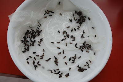今回は、2日水に漬け、半日濡れたキッチンペーパーの植えに載せていた。