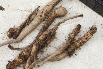 先日も紹介したが、畑の側に置いたガラ袋では納得のいくゴボウ収穫量が続いている。