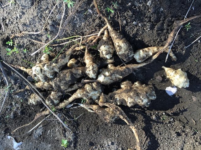 雑草のように力強く茂るキクイモなので、収穫量は必要な分だけということになる。