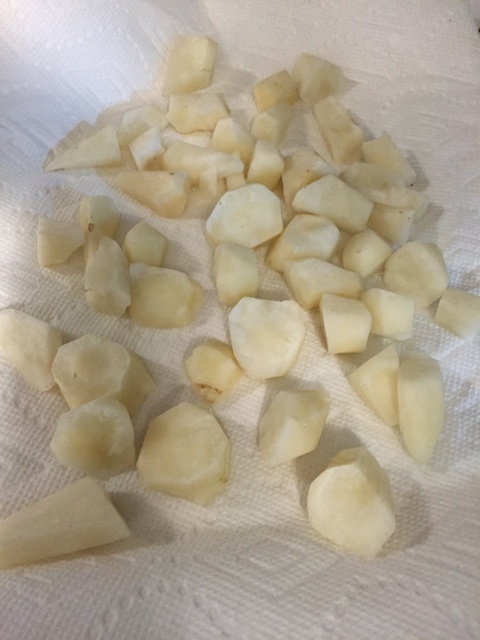 と言うことで、今日の収穫量も味噌漬けを作るのに必要な分だけ。 収穫したキクイモは皮を剥いて、まずは数時間灰汁抜き。 |