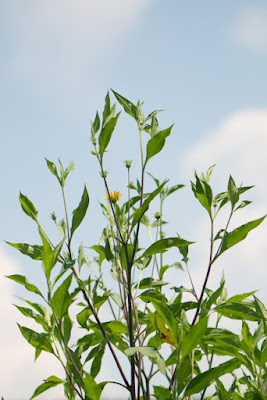 今日収穫してきたキクイモの花。 こちらも湯掻いて天日干しにすると、美味しいお茶になる。 |