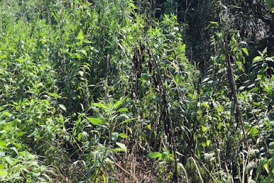 陣地をかなり失って、以前程の勢力は無くなったキクイモだが、畝の周りでは、まだしっかり野生化状態で陣取っている。