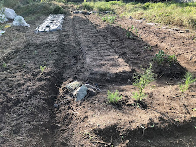 | 左手前の畝が予定外のデストロイヤーの畝。 大好きなデストロイヤーなのだが、作り過ぎにならないようにしたい。 今年は早い時期からの収穫とお裾分けを心がけよう。 |