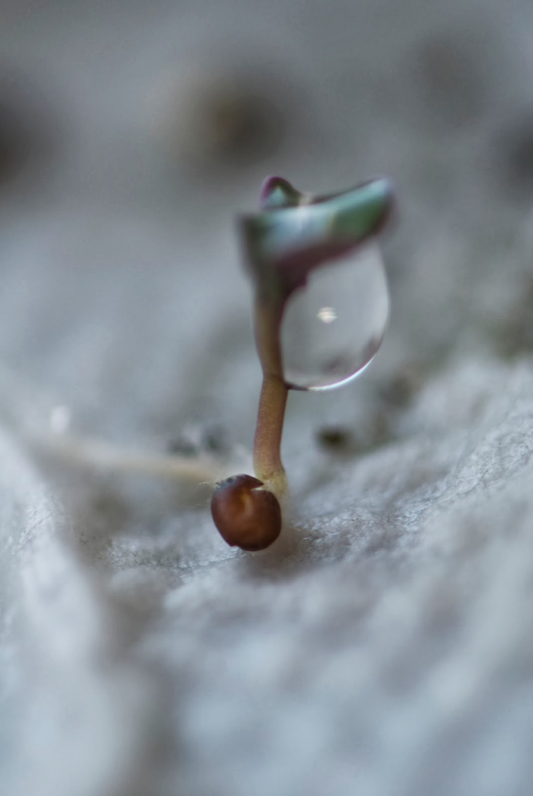 | 種をまくのは濡れたキッチンペーパーの上。 ビニール袋を被せて窓辺に置いていた。 |