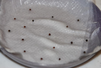 | 種をまくのは濡れたキッチンペーパーの上。 ビニール袋を被せて窓辺に置いていた。 |