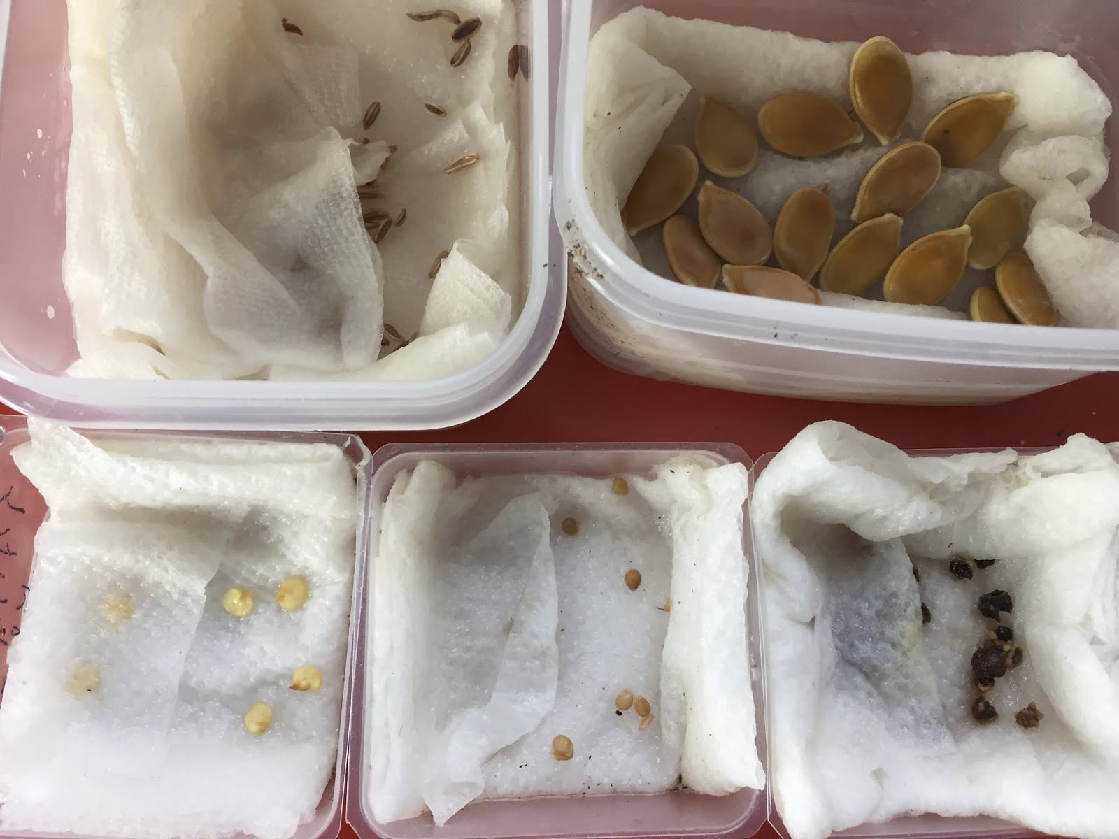 1週間ほど前にキッチンペーパーの上に種を蒔いたのは、トマトとイタリアンピーマン、フェンネルそしてBeetroot、さらにカボチャの種も加えてみた。