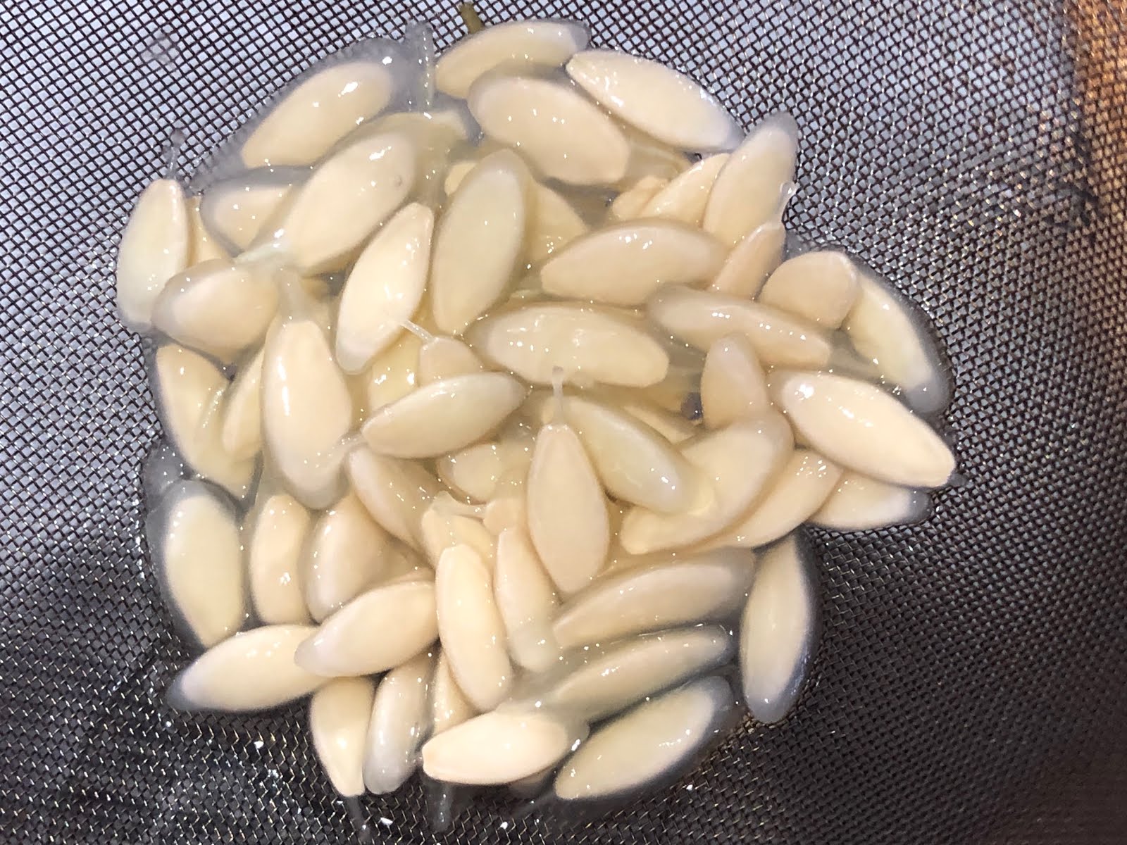 そんな種を茶こしにに取り出し、さらにここでも種を洗って、ゼリーを外した。