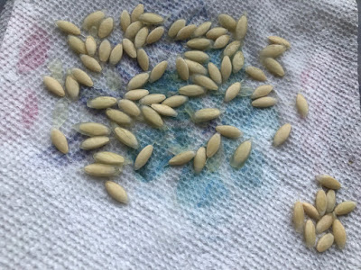 ズッキーニの種取り経験からは、こんな腐れかけた実からの種取りは難しいと思っていたが、こちらの実をビニールに入れた時にこぼれた種の状態が良かったので、これは期待できると確信した。