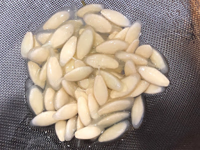 キュウリの種のゼリー部分には発芽抑制物質が含まれているとのこと(恐らく果実には種の周りに皆発芽抑制物質が付いているのだろう)で、これらは外しやすくするために一晩種を水に浸けていた。