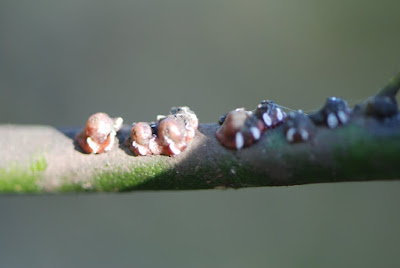 | 葉にも茎にもスス病がいっぱい。 そして茎にはたくさんのカイガラムシが見える。 |