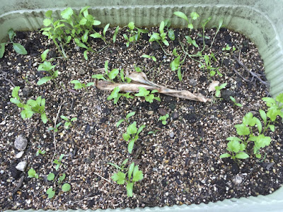 今は下の写真のように、小さな双葉の状態や、5cmくらいのサイズになったものまでそれなりに芽を出している。