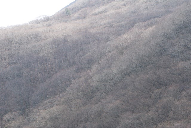 | 今にも新芽が吹き出して山肌の色が一変しそうだ。 |