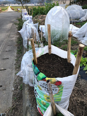 | 今年は5個のビニール袋を準備した。 昨年より2個少ないが、うまく育てば収量としては問題ないはずだ。 |