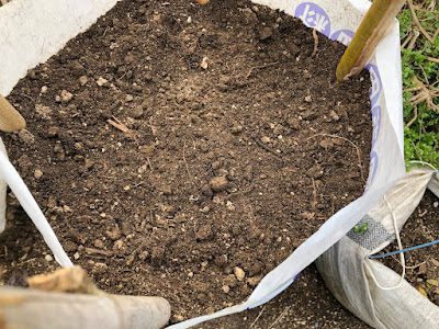 今ビニール袋に土を入れておくと、芽出しさせた種を置く頃には、袋の表面の土から出てくる雑草を片付けることができる。