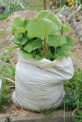 下の写真のガラ袋は袋の中の土の表面が顔を出すように破れた。