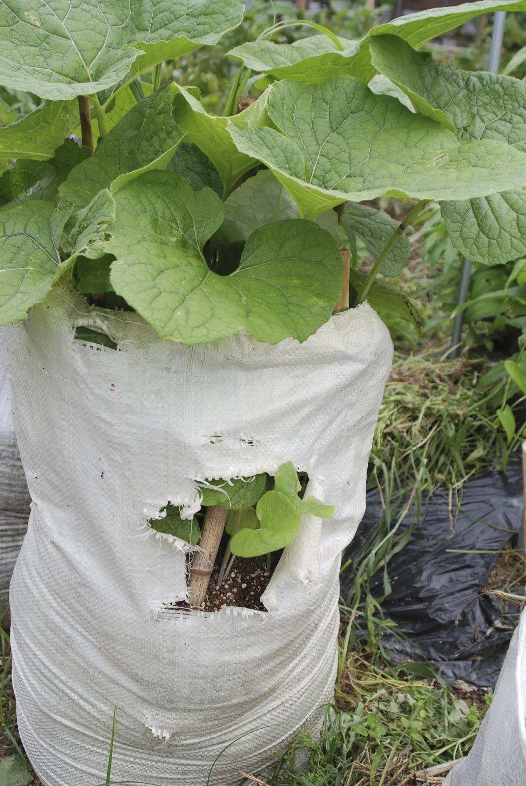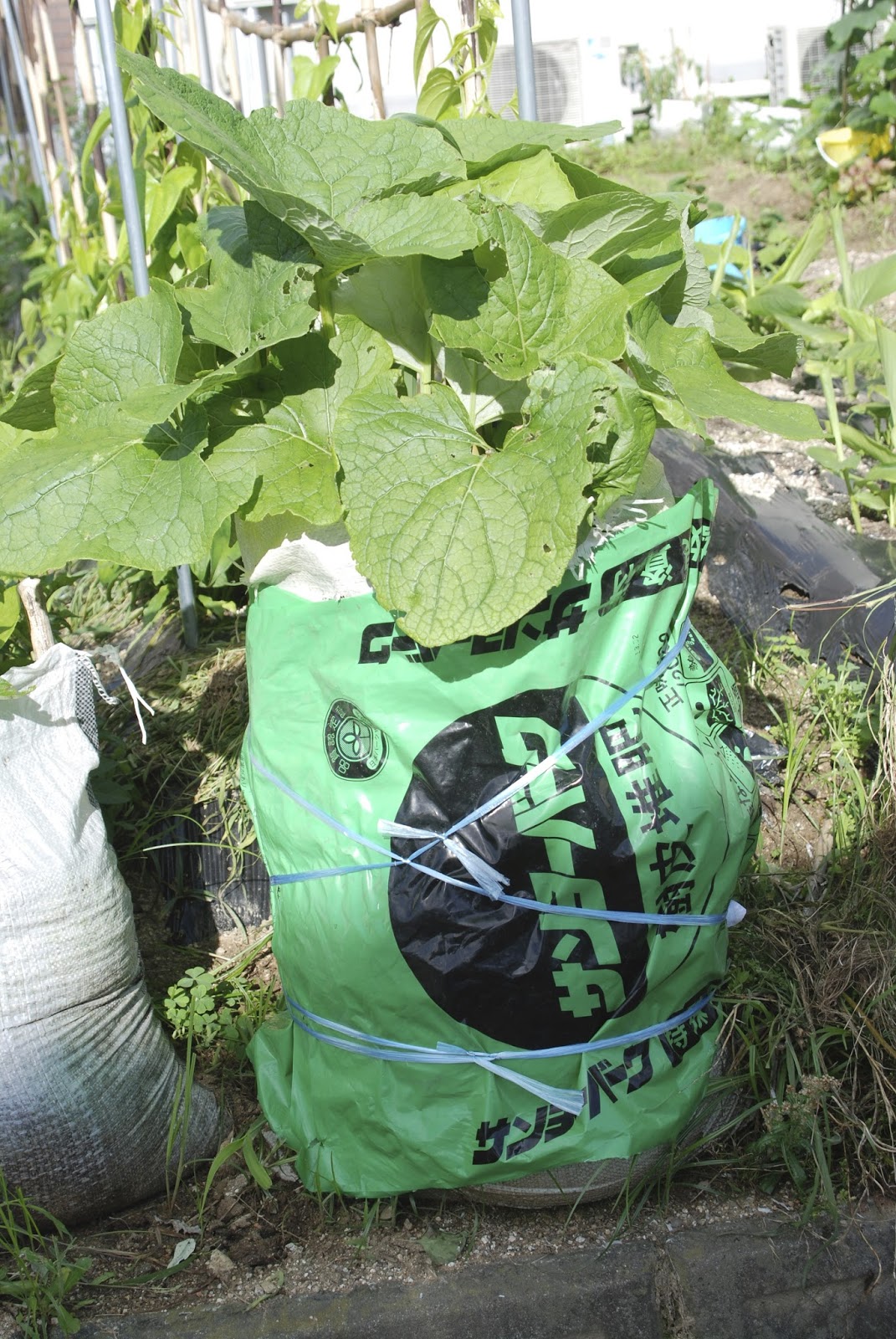 下の写真のガラ袋は袋の中の土の表面が顔を出すように破れた。