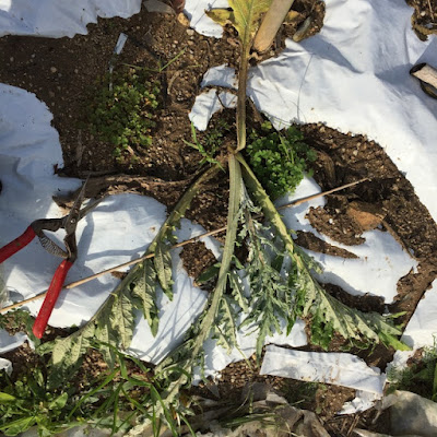 もし、今回倒れていた苗がアブラムシ被害で弱っていたことが一因なら、我が家のアーティチョーク、ほとんどの苗が越冬出来ないかもしれない。