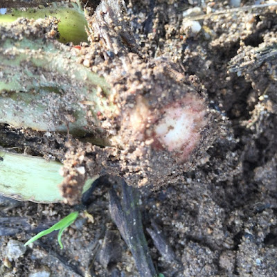 | 一応はのサイズが40cmくらいにまで成長していた苗が倒れていた。 |
