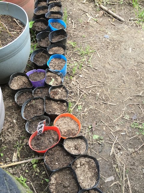 まだ早いかもしれないが、種はたくさんあるので。まず第1弾としてポットに6個程蒔いてみることにした。