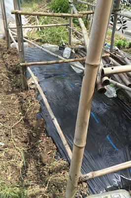 さて先日、インゲンや枝豆用に畝を耕しマルチを掛けておいた。