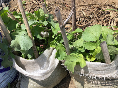 ところで、第1菜園にも昨年通り10個余りの土嚢袋にサツマイモを育てる予定だ。