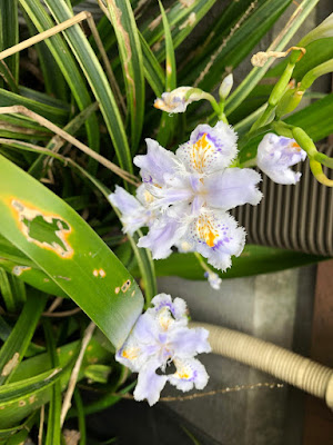 | こちらは、時期終わりなのに精いっぱいきれいな花を見せているシャガ。 シャガは果樹園でたくさん育っているが、ここは移植元の第1菜園のシャガ。 |