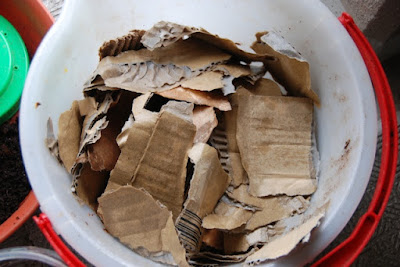 まだ取り置きは十分あるのだが、最近のミミズ小屋では、ココ繊維節約のため、手に入り易いダンボールを多用している。