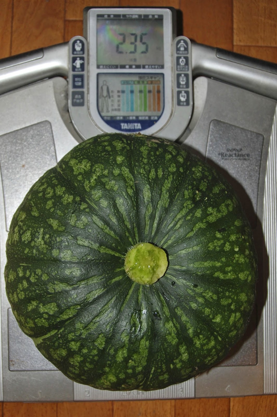 | そのうちもっと大きなものも収穫出来るかもしれない。 このカボチャはこれまで私が収穫したもので最重量だ。 |