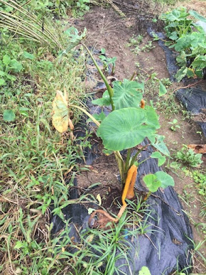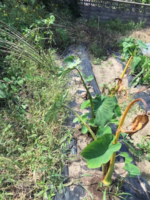 我が家の里芋は、極めて順調に育っている畝から極めで出来の悪い畝まで様々だ。