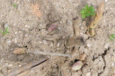 カラカラにひび割れた土の表面に、アスパラは顔を出すのだが、そのあと成長する前に干涸びて一つも収穫出来ない。