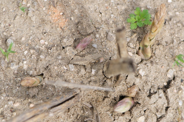 なかでも悲鳴を上げていたのが、昨年末土嚢袋から畝に移植した、種を蒔いて3年目のアスパラ。