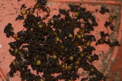 卵胞と赤ちゃんを外し、35匹のミミズ君の新しい餌としては、食べられなくなった白ズッキーニをたっぷり与えておいた。