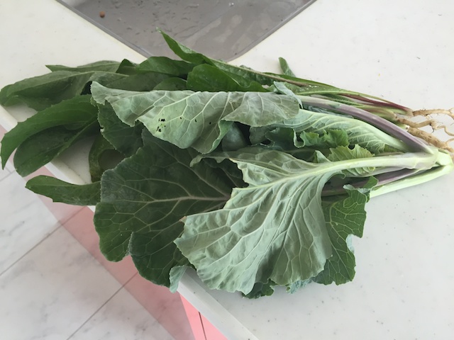 こちらは、畑のあちこちに自生しているので、食べる分だけ確実に収穫出来るツルムラサキ。