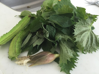 まずこちらは、四角豆(ウリズン豆)、モロヘイヤ、大葉(青シソ)、それに色々な野菜と合わせて使えるミョウガ。