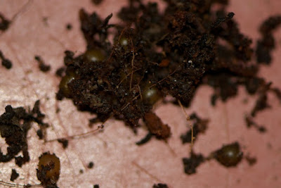 | 今回はこんなにもたくさんの餌が残っていた。 出来ていた堆肥も当然少なかった。 |