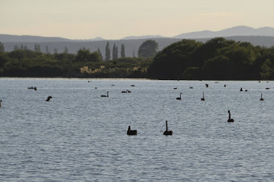 | 泊まったTaupo湖畔の夕暮れ時。コクチョウがいっぱいでびっくり。 |