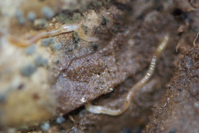 | この観察小屋のミミズ君、ここ数ヶ月とても元気な状態が続いている。 しばらくカボチャの餌が続いたのがよかったのだろうか? |
