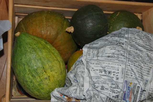 さて、こちらは今現在野菜庫に保管されている最後に残った数個のカボチャ。