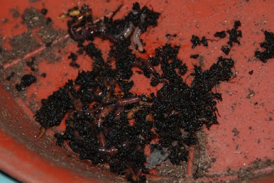 | 一組交接ミミズも居た。 ミミズ君たちは妊娠みみずが多く、太って元気いっぱいだった。 |