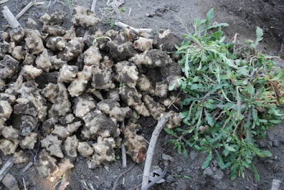 こんな感じで、畝を準備するために、周りを掘り返すと、キクイモが出てくる、出てくる。