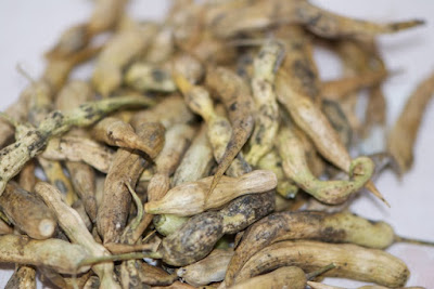 で、まだ緑かかった鞘が多かったが、2週間ほど前、種取り用として鞘を収穫した。