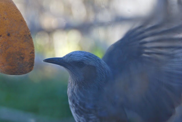 | ヒヨドリが飛んで来たのは窓の外に吊るしているこのミカン。 |