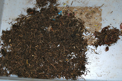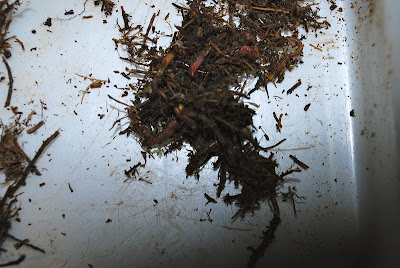| みみず君は17匹、3匹不明、赤ちゃん〜子供ミミズ恐らく投入した時と大きさ変わってない。 |