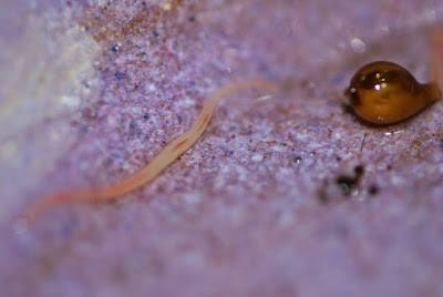 | 生まれて1時間以内ということだけは確実な赤ちゃんミミズと出てきた卵胞のツーショット。 |