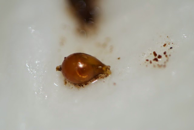 そこでさっそくキッチンペーパーの上にその卵胞を置いて、にらめっこしていた。