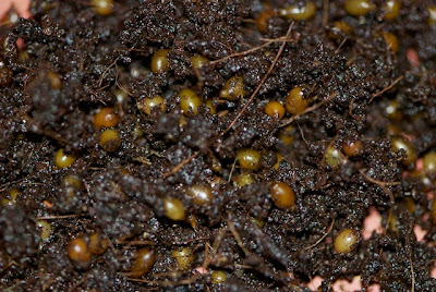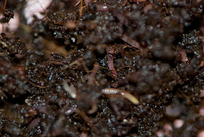 | 小さな赤ちゃんミミズがざっと数えただけで20匹以上いた。 これらの赤ちゃんは卵胞とともに、この観察小屋からは除外だ。 |
