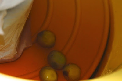 ところで、昨日漬けた小梅は早くも梅酢が上がってきた。