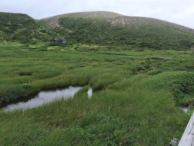 こちらは、火山ガス(二酸化硫黄)が噴出して、火山警戒レベル2とのことで、この春から立ち入り規制されている一切経山。