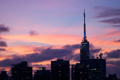 梅雨が明けると、アオサギ君は毎年恒例の、朝日に向かっての儀式。