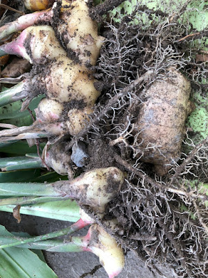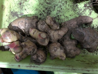 今日は、こんなショウガの苗を半分ほど掘り起こして帰った。